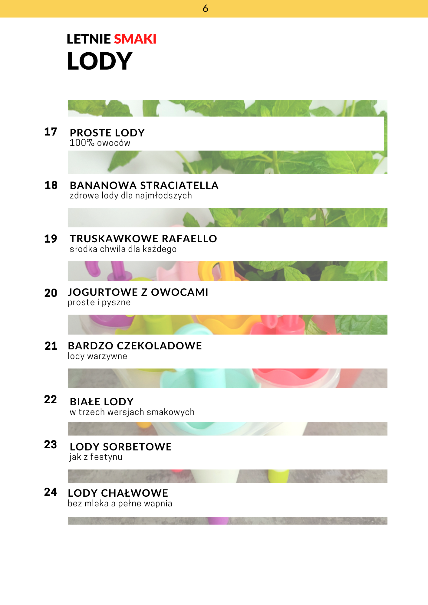 LETNIE SMAKI to błyskawiczne przepisy na pyszne i zdrowsze słodycze, które idealnie zastąpią te sklepowe. Nie musisz rezygnować z chłodzących lodów czy napojów. Wypróbuj nasze przepisy i znajdź kompromis między tym, co chce jeść Twoje dziecko, a tym co będzie dla niego zdrowe.